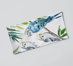 Two parakeets snuggle up to each other in a hammock in the middle of the greenery. Their heads tilted slightly, as if secretly whispering that this really is the best place in the world after all. Perfect for anyone looking to bring some cheer and love into their home. This print is part of the "Jungle Hammock Tales" series - summer relaxing with a wink. This digital illustration has been created in a photo-realistic style, with an eye for light, detail and atmosphere. Visualised by Trinkets NL Design Studio using AI.