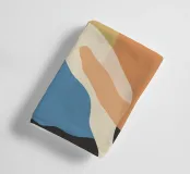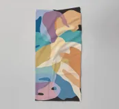 An elegant abstract composition of overlapping, leaf like shapes in a soft, pastel color palette, creating a sense of gentle movement and serene, organic harmony.
