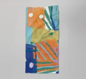 A vibrant abstract collage resembles a patchwork quilt, with different sections featuring varied textures, patterns, and colors, all stitched together in a harmonious and playful composition.