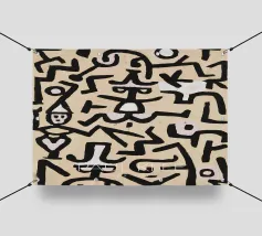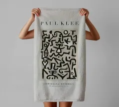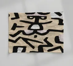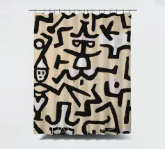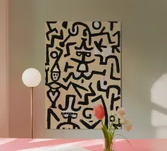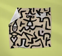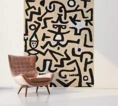 Explore the rhythmic lines of Paul Klee's Abstract Figures digital art print. This compelling abstract painting, a unique piece from the Bauhaus era, features a dynamic composition of thick, dark, interlocking lines forming stylized figures or symbols against a light, textured background. Klee's distinctive style, influenced by primitive art, creates a sense of movement and visual language through form and rhythm. This high-quality digital reproduction boasts a resolution of 7000x5000 pixels at 300 dpi, ensuring outstanding clarity, sharp lines, accurate colors, and faithful detail of the pain