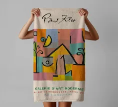 Explore the interplay of structure and symbol with Paul Klee's Abstract Forms on Grid digital art print. This captivating painting from the Bauhaus era features a background of colorful geometric blocks, overlaid with bold black linear forms suggesting a stylized tree, eye-like shapes, and other abstract symbols. Klee's unique visual language creates a vibrant composition that is both playful and contemplative. This high-quality digital reproduction boasts a resolution of 7000x5000 pixels at 300 dpi, ensuring outstanding clarity, brilliant colors, and faithful detail of the painting's unique t