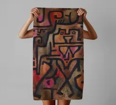 Explore the intricate world of form with Paul Klee's Interlocking Abstract Forms digital art print. This captivating painting from the Bauhaus era features a dense composition of interlocking shapes resembling abstract figures or masks, defined by bold black lines and filled with rich, earthy colors. Klee's unique visual language, influenced by primitive art, creates a rhythmic and somewhat totemic visual experience. This high-quality digital reproduction boasts a resolution of 7000x5000 pixels at 300 dpi, ensuring outstanding clarity, brilliant colors, and faithful detail of the painting's un