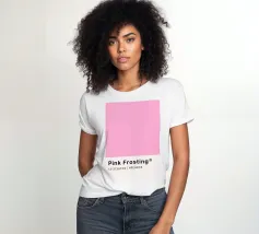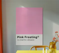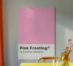 Sweeten your space with this delightful digital poster, showcasing the "Pink Frosting" Pantone color. The upper section features a solid block of this cheerful, soft pink hue, while the lower part clearly displays "Pink Frosting®" along with its Pantone code 13-2136TPX and hexadecimal value #FEAED5. This print is perfect for adding a playful yet sophisticated touch of color to any interior, appealing to designers and color enthusiasts alike. This high-quality digital poster is provided at an impressive 7000x5000 pixels resolution and 300 dpi, ensuring exceptional clarity and accurate color rep