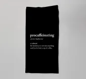 Embrace your coffee addiction with our witty "Procaffeinating" typography art print. This clever design presents a humorous definition in crisp white text on a sleek black background, mimicking a dictionary entry. Perfect for coffee lovers and procrastinators alike, it adds a touch of relatable humor to any kitchen, office, or café. The stark contrast and formal typography style create a visually striking piece that's both amusing and stylish. Available on various products, this versatile design makes an ideal gift for anyone who can't function without their daily brew.