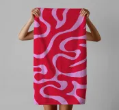 psychedelic design, red and pink art, abstract wave pattern, funky background, 70s style print, groovy aesthetic, bold abstract shapes, trippy artwork, vibrant swirl design, retro decor style, fluid lines art, colorful visual texture