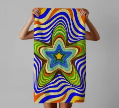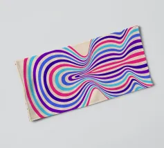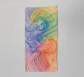 Immerse yourself in a world of hypnotic lines and powerful colours! This modern art poster combines gentle transitions of blue, green, yellow and red in a dynamic, abstract composition. Perfect for anyone who wants to add a touch of movement and energy to their living space. Ideal for living rooms, offices or creative studios. The perfect blend of optical art (op art) and minimalist aesthetics!