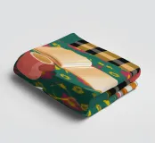 A cozy interior scene of a person reading a book at a table with a vase of flowers, seated on a green checkered chair, creating a peaceful, homey atmosphere.