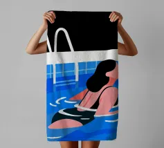 A woman enjoys a peaceful afternoon in a clear blue pool, basking under the sun. Her calm expression and graceful pose convey relaxation and tranquility during leisure time.