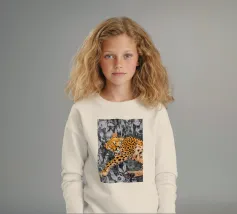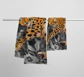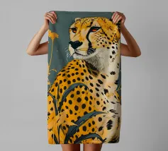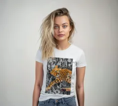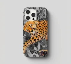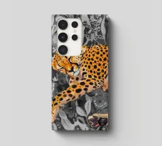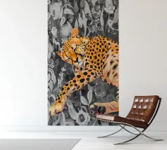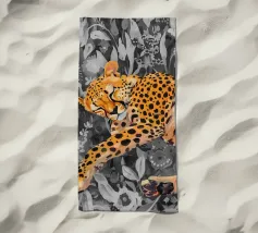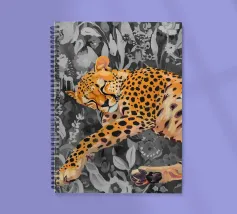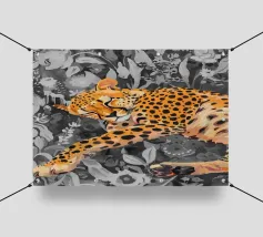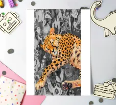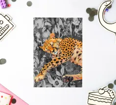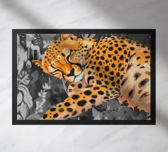 Immerse yourself in this captivating digital poster featuring a beautifully rendered leopard, its vibrant orange coat and distinctive black spots contrasting strikingly against a grayscale floral jungle backdrop. The leopard is depicted in a serene, resting pose, blending the wild with a touch of artistic calm. This piece combines realistic detail with a Pop Art sensibility, perfect for adding an exotic yet sophisticated touch to any modern living space, bedroom, or nature-inspired decor. Crafted at a remarkable 7000x5000 pixels resolution and 300 dpi, this superior quality digital print ensur