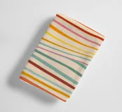 A joyful and expressive abstract waves pattern featuring flowing, wavy lines in a retro rainbow-inspired palette — from soft orange and warm pink to bold turquoise, aqua, yellow, and red — all gently layered over a warm ivory background. Minimal yet impactful, this design celebrates the beauty of differences and the harmony found in diversity.