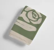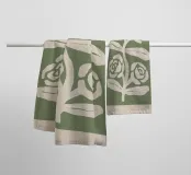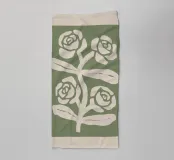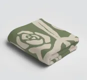 A charming abstract artwork featuring stylized off-white roses and foliage on a sage green background with a neutral border, perfect for boho and modern farmhouse decor.