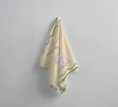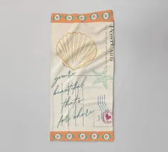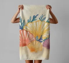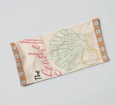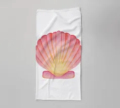 A playful and stylish art print featuring two stylized seashells—one in pink and one in yellow—with the word "Seashell" written in a flowing, handwritten script between them. The shells are framed by whimsical, spiral shapes in a soft green, adding to the charming, retro feel. The hand-drawn, textured style and soft pastel color palette create a serene yet fun piece. This poster is perfect for adding a touch of coastal charm and modern flair to a bathroom, bedroom, or beach house. This high-quality digital download (7000x5000 pixels, 300 dpi) ensures crisp lines and beautiful colors.