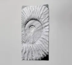 Shell fossil petrified amonite This photograph captures the ammonite shell in all its glory, highlighting its stunning textures and intricate details. The mesmerizing spiral pattern tells a story of millions of years, transporting viewers back to a time when these fascinating creatures roamed the oceans. The rich hues of the fossilized shell, ranging from earthy browns to soft creams and subtle greens, create a warm and inviting atmosphere, making this image a perfect focal point in any room.
