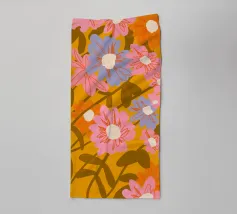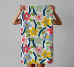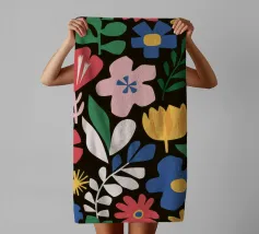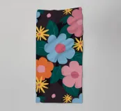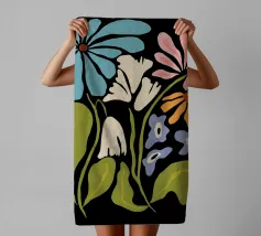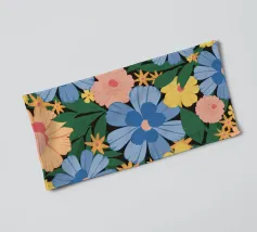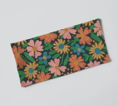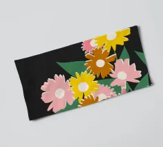 A simple and cheerful pattern of stylized daisies in various colors against a dark background creates a classic, beautiful, and timeless floral design.