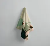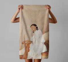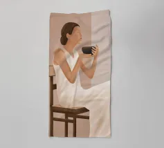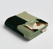 Blending mid-century tones and modern grace, this piece explores the intersection of shape and solitude. The soft color palette and bold geometry echo the woman’s tranquil presence, crafting a composition that feels like visual jazz—sophisticated and effortless.