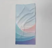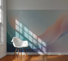 Light, flowing waves in soft pastel colors blend harmoniously, creating a calming backdrop. Subtle water droplets add texture to the tranquil scene, enhancing its beauty.