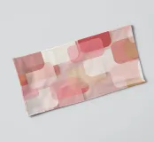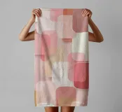 Abstract geometric pattern in soft pink, blush, cream and warm beige tones. Gentle overlapping shapes create a modern, cozy decorative look.