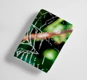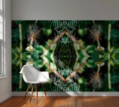 Four mirrored versions of a dew-covered spider web come together to create a mesmerizing diamond-shaped pattern at the center, forming a magical portal-like composition. The sparkling morning dew and intricate web details evoke a sense of wonder and delicate beauty. This abstract fine art piece is perfect for contemporary living spaces, offices, galleries, or any area that welcomes mystical and captivating designs.