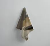 Sharp blacks and gentle golds crack across a muted field in dramatic quiet.