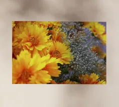A luminous dialogue between yellow chrysanthemums and delicate white blossoms. Sometimes vibrant, sometimes subtle, the composition plays with focus and space — inviting the viewer into both harmony and contrast. A fine art print that brings poetic balance and natural beauty to any interior.