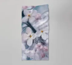 Delicate spring blossoms on a branch bathed in warm light. Soft focus and natural colours emphasise the lightness and freshness of the scene.