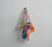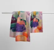 A colourful, abstract work of art that captures the vibrancy of nature in dynamic brushstrokes. Vibrant shades of pink, orange and green merge into a summery interplay of fruit, leaves and floral shapes. The motif radiates joie de vivre and is reminiscent of warm summer days and creative freedom.