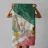 A woman sunbathes on a pink towel on a patio, with a glass of lemonade nearby. The strong shadows from a nearby plant create a beautiful, graphic, and atmospheric play of light and shade.