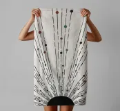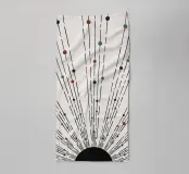 This extraordinary design shows a stylised sun with dynamic rays of fine lines, complemented by coloured dots in green, brown and black. The minimalist aesthetic and soft colour palette make this motif ideal for murals, cushions, mugs and other home accessories. It brings a modern and calming atmosphere to any room and is perfect for lovers of boho and Scandinavian style as well as anyone who appreciates art and design.