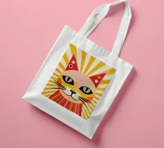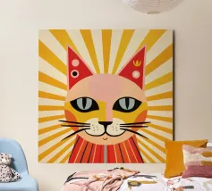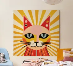 A bold and stylish cat illustration in warm, friendly tones, designed with a clean, graphic aesthetic. This sassy feline combines minimalist shapes with maximum charm, offering a playful yet modern look. Perfect for wall art, home decor, or stylish accessories and gifts, this design adds a quirky pop of personality and warmth to any space - ideal for cat lovers and fans of contemporary illustration.