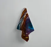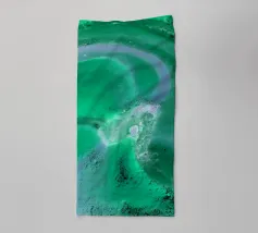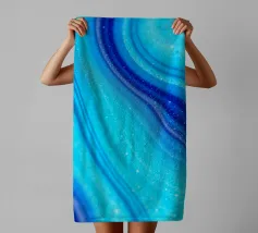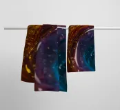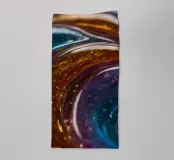 This resin art piece showcases an intricate swirl of vibrant colors and textures, featuring deep blues, rich golds, and an array of glowing accents. The detail highlights the artistry involved.