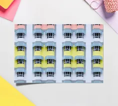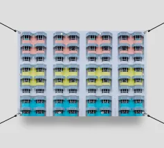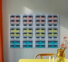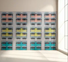 Geometric forms and mirrored patterns create a visual rhythm that evokes harmony, balance, and order. The artwork draws inspiration from classical and modern architecture, transforming architectural elements into an abstract, almost meditative composition. Ideal for lovers of design and structure, this piece celebrates the elegance of symmetry and the art of intentional space.