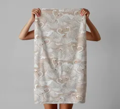 The white feathers dance across the sand-coloured field as if dabbed by the breath of a dream - a poetic interplay of weightlessness and structure. The composition is reminiscent of Japanese minimalist aesthetics, combined with the graphic clarity of Scandinavian textile designs. Each feather looks like a quiet thought, captured at the moment of letting go. This work speaks of freedom, fragility and the beauty of the ephemeral - a meditative ornament for rooms that breathe.