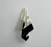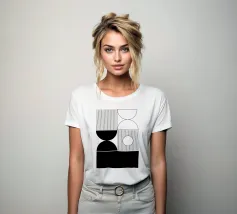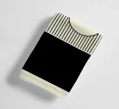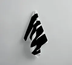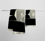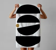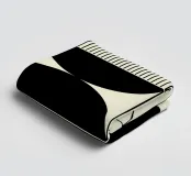 his minimalist piece, 'The Pause,' is a masterclass in visual balance and modern aesthetic. It uses bold black and soft cream to explore positive/negative space. A solid black base anchors the work, while dynamic curves contrast sharply with precise vertical striping above. This simple arrangement creates striking graphic impact and clarity. Its clean lines give it a timeless, retro-modern feel, perfect for contemporary or Scandinavian interiors. A powerful decor statement.