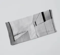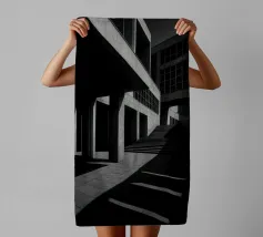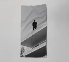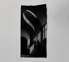 Tokyo seen from below, like a concrete labyrinth framed by a single window. A visual plunge into silence and rigour. This graphic poster plays with light and architecture like a visual haiku. Hypnotic and Zen-like.