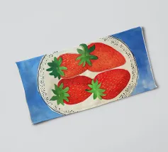 In this striking minimalist study, slices of bright red tomato are precisely arranged on a plate against a white grid background. The composition is a graphic play on shape, color, and pattern, finding beauty in simplicity and geometric precision.