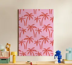 palm tree print, tropical summer pattern, retro beach design, pink tropical aesthetic, coastal vibe art