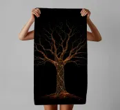 A beautifully detailed tree with intricate branches lit up by shimmering lights, creating an enchanting effect against a stark black background, perfect for enhancing mobile device aesthetics.