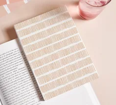 An abstract design featuring multiple rows of evenly spaced, light brown vertical lines set against a white background, creating a visually consistent and uniform pattern ideal for minimalist art and design projects.