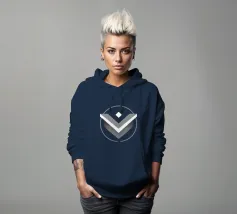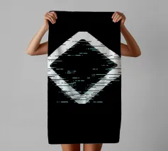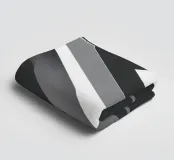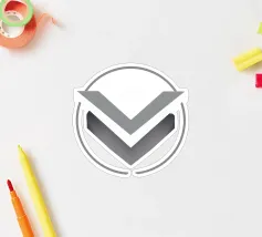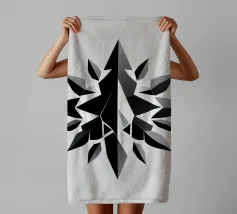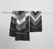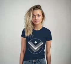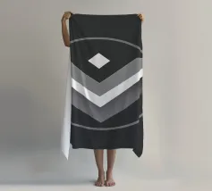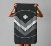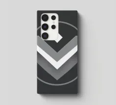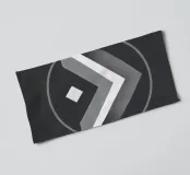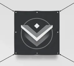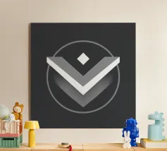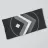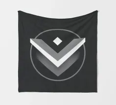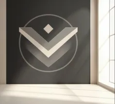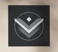 A logo with sharp geometric shapes, including a diamond and layered chevrons, displayed in shades of gray on a sleek, dark background, showcasing modern design aesthetics.
