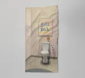 A humorous bathroom poster in soft pastel colours with the cheerful text "Sit down" invites you to smile in the guest toilet. With minimalist graphics and toilet paper and hand-drawn elements, it creates a fun atmosphere and sends a clear message against standing up to pee!