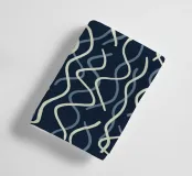 A series of wavy, intertwining lines create an intricate pattern on a dark background. The lines vary in thickness and alternate between light and dar