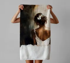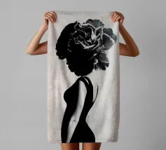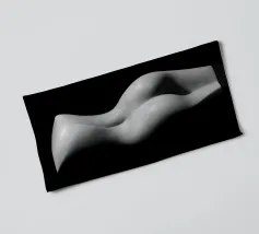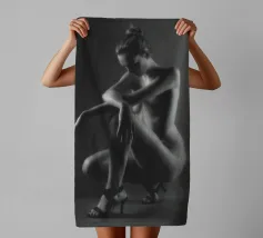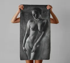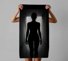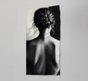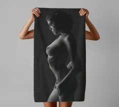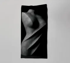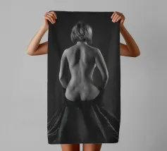 A woman poses with her back turned, showcasing the contours of her spine and shoulder blades. The black and white tones enhance the beauty of her silhouette and create an artistic atmosphere.