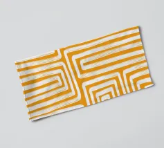 Yellow and gray stripes intersect to form a dynamic grid pattern, creating a sense of depth and movement across the composition. The overlapping lines and varied hues give the piece a geometric and abstract feel.