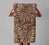 An abstract pattern resembling zebra stripes with irregular brown lines on a beige background. The design has an organic flow.