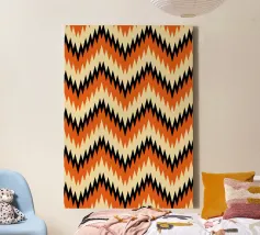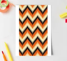 Add a dynamic touch to your space with this striking modern abstract poster featuring a vibrant zigzag chevron pattern. The design showcases alternating horizontal stripes of bold orange, classic black, and a subtle off-white or cream color, creating a lively and rhythmic visual effect. This eye-catching pattern is perfect for adding energy and a contemporary feel to any room. Expertly crafted at an impressive 7000x5000 pixels resolution at 300 dpi, this high-quality digital art print ensures exceptional clarity and crisp lines, making it an ideal statement piece for modern, minimalist, or ecl
