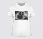 A mighty African elephant runs through the dusty savannah - every movement stirs up the earth and fills the air with dynamism. The large-format, monochrome photograph impressively captures the raw power and beauty of this wild moment.