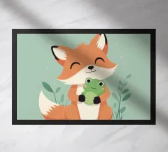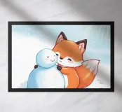 Voxy the fox gently hugs his little snow-friend under the bright winter sun. Soft colors, playful footprints, and a cozy snowy scene make this artwork perfect for kids’ rooms, nurseries, and winter decor lovers. A heart-melting illustration full of friendship and warmth.