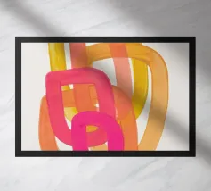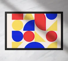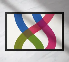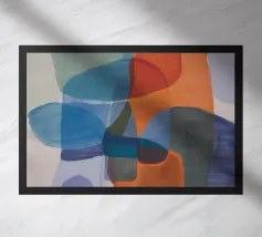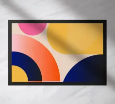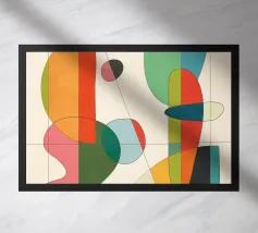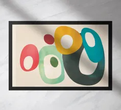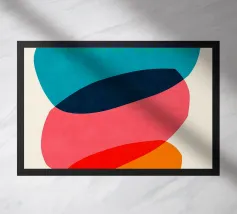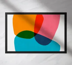 This modern art poster shows overlapping, rounded shapes in bold colours such as blue, red, orange, pink and yellow - seemingly floating and interconnected. The transparent effect of the colours creates depth and lightness at the same time. Ideal for minimalist rooms, creative offices or as a stylish highlight in your gallery wall.
