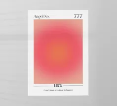 This vibrant digital poster features "Angel No. 777" against a captivating aura gradient, transitioning from bright pink to warm orange and amber hues. The word "LUCK" at the bottom is accompanied by the uplifting affirmation: "Good things are about to happen." This artwork is designed to inspire optimism, good fortune, and positive expectation. Provided at an impressive 7000x5000 pixels resolution and 300 dpi, this high-quality digital poster ensures vibrant colors and crisp details for any print size. Elevate your space with this empowering and visually striking piece.