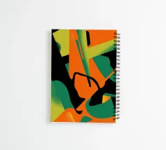 A powerful abstract artwork combines bold, sharp shapes in black, green, and orange, creating a dynamic, high-contrast, and edgy piece of modern art.
